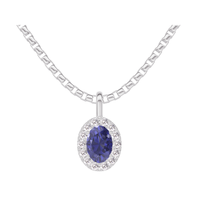 « L'ATELIER » Nº206515Pendant White gold 18 carats - Blue Sapphire Oval 0.3 Carats - Halo Diamond white - Chain Venetian