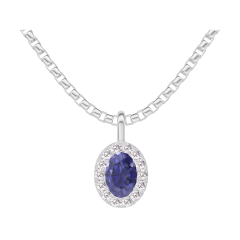 Pendant White gold 9 carats - Blue Sapphire Oval 0.3 Carats - Halo Diamond white - Chain Venetian