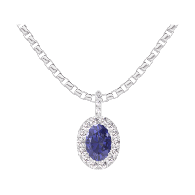 « L'ATELIER » NO. 206520Pendant White gold 9 carats - Blue Sapphire Oval 0.3 Carats - Halo Diamond white - Setting Diamond white - Chain Venetian