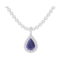 Pendant White gold 18 carats - Blue Sapphire Pear 0.3 Carats - Halo Diamond white - Setting Diamond white - Chain Rolo