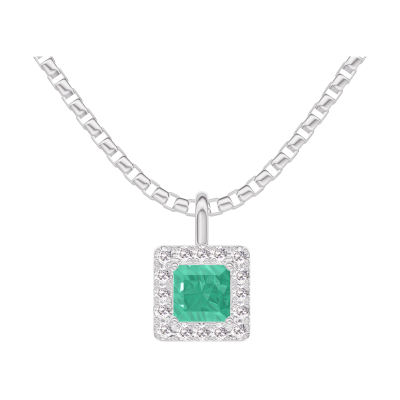 « L'ATELIER » NO. 207284Pendant White gold 9 carats - Emerald Princess 0.3 Carats - Halo Diamond white - Chain Venetian