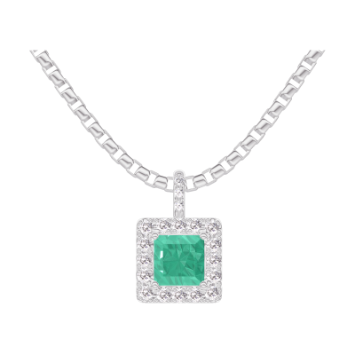 « L'ATELIER » NO. 207288Pendant White gold 9 carats - Emerald Princess 0.3 Carats - Halo Diamond white - Setting Diamond white - Chain Venetian