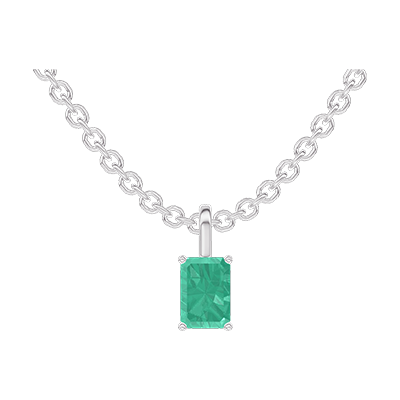 « L'ATELIER » NO. 207411Pendant White gold 18 carats - Emerald Baguette 0.3 Carats - Chain Rolo