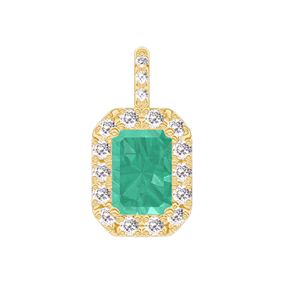 « L'ATELIER » NO. 207446Pendant Yellow gold 9 carats - Emerald Baguette 0.3 Carats - Halo Diamond white - Setting Diamond white - No Chain