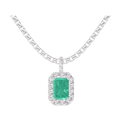 « L'ATELIER » NO. 207480Pendant White gold 9 carats - Emerald Baguette 0.3 Carats - Halo Diamond white - Setting Diamond white - Chain Venetian