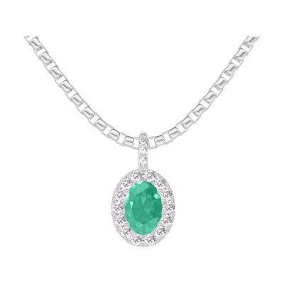 « L'ATELIER » NO. 207671Pendant White gold 18 carats - Emerald Oval 0.3 Carats - Halo Diamond white - Setting Diamond white - Chain Venetian