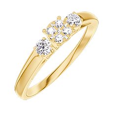 Ring Yellow gold 18 carats - Cluster of natural diamonds round equivalent 0.3 - Ring settings Diamond white