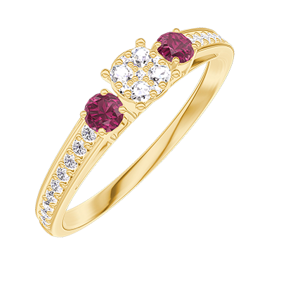 « L'ATELIER » Nº209045Ring Yellow gold 18 carats - Cluster of natural diamonds round equivalent 0.3 - Ring settings Ruby - Setting Diamond white 4.5