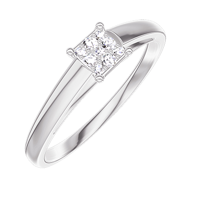 « L'ATELIER » Nº209104Ring White gold 9 carats - Cluster of natural diamonds Princess equivalent 0.3