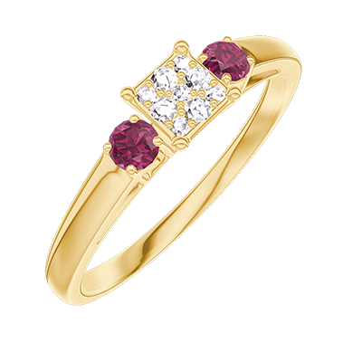 « L'ATELIER » NO. 209142Ring Yellow gold 9 carats - Cluster of natural diamonds Princess equivalent 0.3 - Ring settings Ruby