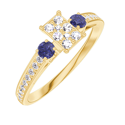 « L'ATELIER » NO. 209265Ring Yellow gold 18 carats - Cluster of natural diamonds Baguette equivalent 0.3 - Ring settings Blue Sapphire - Setting Diamond white