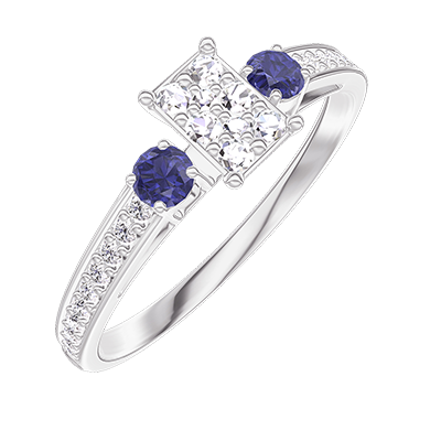 « L'ATELIER » Nº209268Ring White gold 9 carats - Cluster of natural diamonds Baguette equivalent 0.3 - Ring settings Blue Sapphire - Setting Diamond white