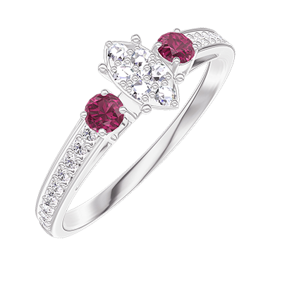 « L'ATELIER » NO. 209547Ring White gold 18 carats - Cluster of natural diamonds Marquise equivalent 0.3 - Ring settings Ruby - Setting Diamond white