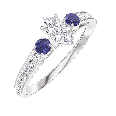 « L'ATELIER » Nº209567Ring White gold 18 carats - Cluster of natural diamonds Marquise equivalent 0.3 - Ring settings Blue Sapphire - Setting Diamond white