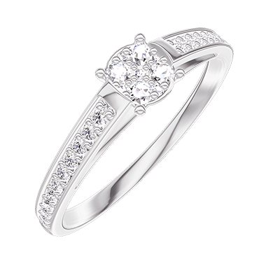 « L'ATELIER » NO. 209608Ring White gold 9 carats - Cluster of natural diamonds round equivalent 0.5 - Setting Diamond white 4.5