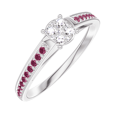 « L'ATELIER » NO. 209612Ring White gold 9 carats - Cluster of natural diamonds round equivalent 0.5 - Setting Ruby 4.5