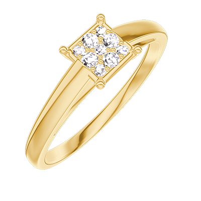 « L'ATELIER » NO. 209701Ring Yellow gold 18 carats - Cluster of natural diamonds Princess equivalent 0.5