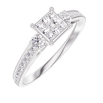 « L'ATELIER » NO. 209728Ring White gold 9 carats - Cluster of natural diamonds Princess equivalent 0.5 - Ring settings Diamond white - Setting Diamond white