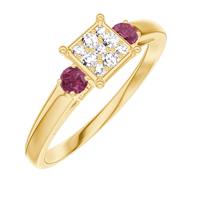 « L'ATELIER » NO. 209742Ring Yellow gold 9 carats - Cluster of natural diamonds Princess equivalent 0.5 - Ring settings Ruby
