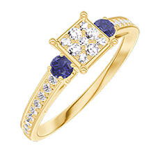 « L'ATELIER » NO. 209765Ring Yellow gold 18 carats - Cluster of natural diamonds Princess equivalent 0.5 - Ring settings Blue Sapphire - Setting Diamond white
