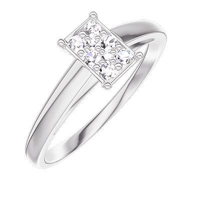 « L'ATELIER » NO. 209804Ring White gold 9 carats - Cluster of natural diamonds Baguette equivalent 0.5