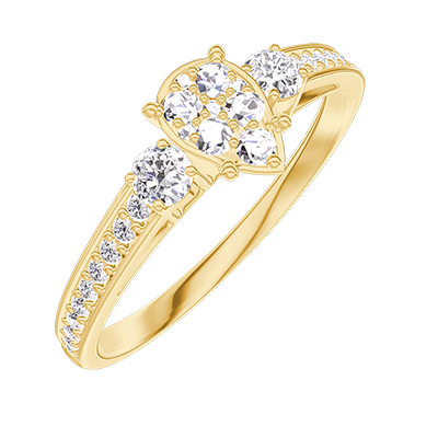 « L'ATELIER » NO. 210026Ring Yellow gold 9 carats - Cluster of natural diamonds Pear equivalent 0.5 - Ring settings Diamond white - Setting Diamond white