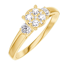 Ring Yellow gold 18 carats - Cluster of natural diamonds round equivalent 0.7 - Ring settings Diamond white