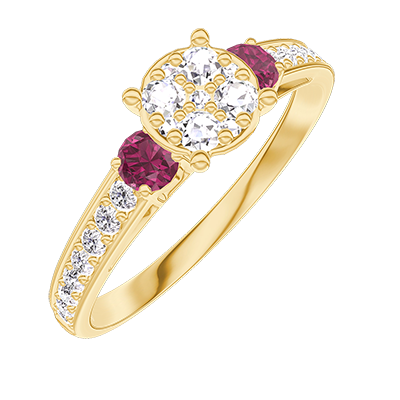 « L'ATELIER » NO. 210245Ring Yellow gold 18 carats - Cluster of natural diamonds round equivalent 0.7 - Ring settings Ruby - Setting Diamond white 4.9
