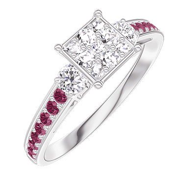 « L'ATELIER » Nº210331Ring White gold 18 carats - Cluster of natural diamonds Princess equivalent 0.7 - Ring settings Diamond white - Setting Ruby