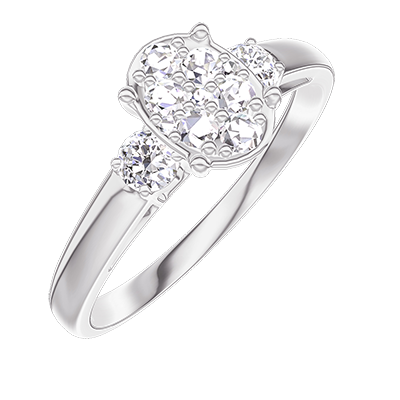 « L'ATELIER » NO. 210524Ring White gold 9 carats - Cluster of natural diamonds Oval equivalent 0.7 - Ring settings Diamond white