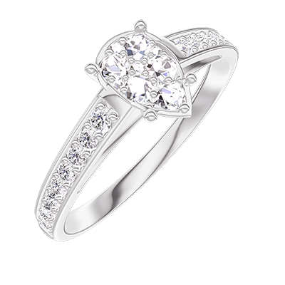 « L'ATELIER » NO. 210607Ring White gold 18 carats - Cluster of natural diamonds Pear equivalent 0.7 - Setting Diamond white