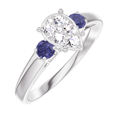 « L'ATELIER » NO. 210663Ring White gold 18 carats - Cluster of natural diamonds Pear equivalent 0.7 - Ring settings Blue Sapphire