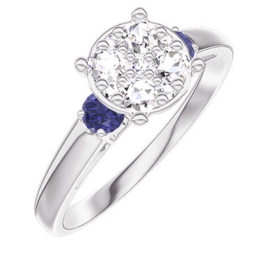 « L'ATELIER » NO. 210864Ring White gold 9 carats - Cluster of natural diamonds round equivalent 1 - Ring settings Blue Sapphire 4.8