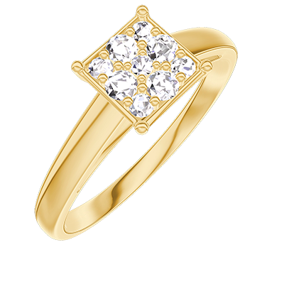 « L'ATELIER » NO. 210902Ring Yellow gold 9 carats - Cluster of natural diamonds Princess equivalent 1
