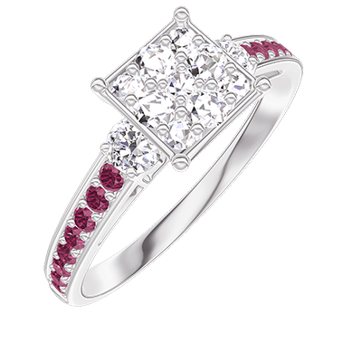 « L'ATELIER » Nº210932Ring White gold 9 carats - Cluster of natural diamonds Princess equivalent 1 - Ring settings Diamond white - Setting Ruby