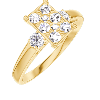 « L'ATELIER » NO. 211022Ring Yellow gold 9 carats - Cluster of natural diamonds Baguette equivalent 1 - Ring settings Diamond white 4.6