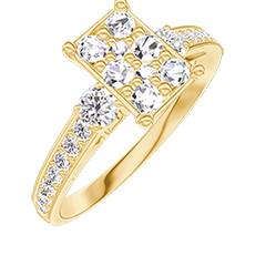 Ring Yellow gold 9 carats - Cluster of natural diamonds Baguette equivalent 1 - Ring settings Diamond white - Setting Diamond white