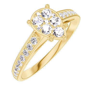 « L'ATELIER » NO. 211206Ring Yellow gold 9 carats - Cluster of natural diamonds Pear equivalent 1 - Setting Diamond white