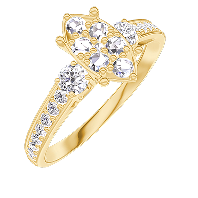 « L'ATELIER » NO. 211326Ring Yellow gold 9 carats - Cluster of natural diamonds Marquise equivalent 1 - Ring settings Diamond white - Setting Diamond white