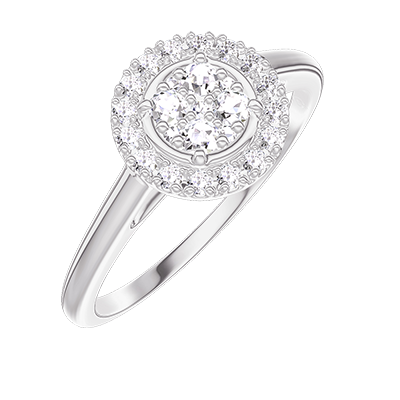 « L'ATELIER » NO. 211403Ring White gold 18 carats - Cluster of natural diamonds round equivalent 0.5 - Halo Diamond white 4.7