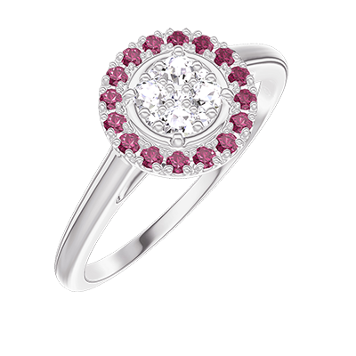 « L'ATELIER » Nº211419Ring White gold 18 carats - Cluster of natural diamonds round equivalent 0.5 - Halo Ruby 4.7
