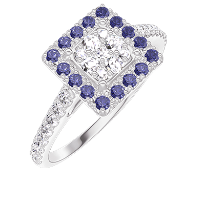 « L'ATELIER » Nº211487Ring White gold 18 carats - Cluster of natural diamonds Princess equivalent 0.5 - Halo Blue Sapphire - Setting Diamond white 4.1