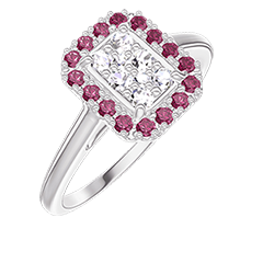 Ring White gold 18 carats - Cluster of natural diamonds Baguette equivalent 0.5 - Halo Ruby