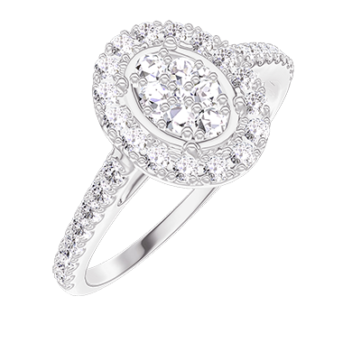 « L'ATELIER » NO. 211552Ring White gold 9 carats - Cluster of natural diamonds Oval equivalent 0.5 - Halo Diamond white - Setting Diamond white 4.5