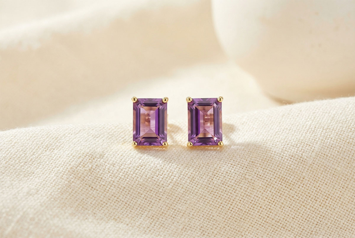 « L'ATELIER » NO. 218807Earrings Yellow gold 9 carats - Amethyst Baguette 0.3 Carats (2 X)