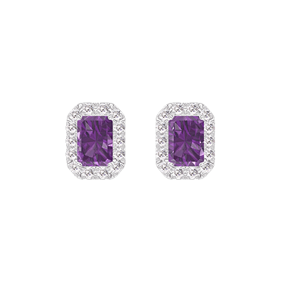 « L'ATELIER » Nº218815Earrings White gold 9 carats - Amethyst Baguette 0.3 Carats (2 X) - Halo Diamond white