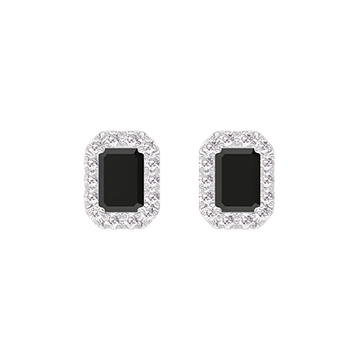 « L'ATELIER » NO. 225295Earrings White gold 9 carats - Diamond black Baguette 0.3 Carats (2 X) - Halo Diamond white