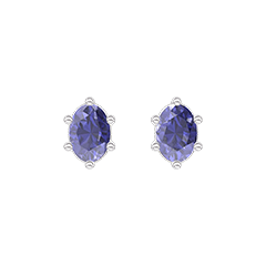 Earrings White gold 18 carats - Blue Sapphire Oval 0.3 Carats (2 X)