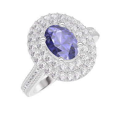« L'ATELIER » NO. 405262Ring White gold 18 carats - Blue Sapphire Oval 0.5 Carats - Halo Diamond white - Setting Diamond white