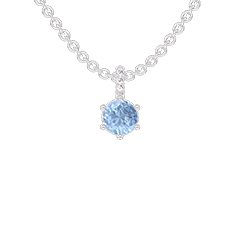 « L'ATELIER » NO. 407465Pendant White gold 9 carats - Blue Topaze round 0.3 Carats - Setting Diamond white - Chain Rolo 4.6